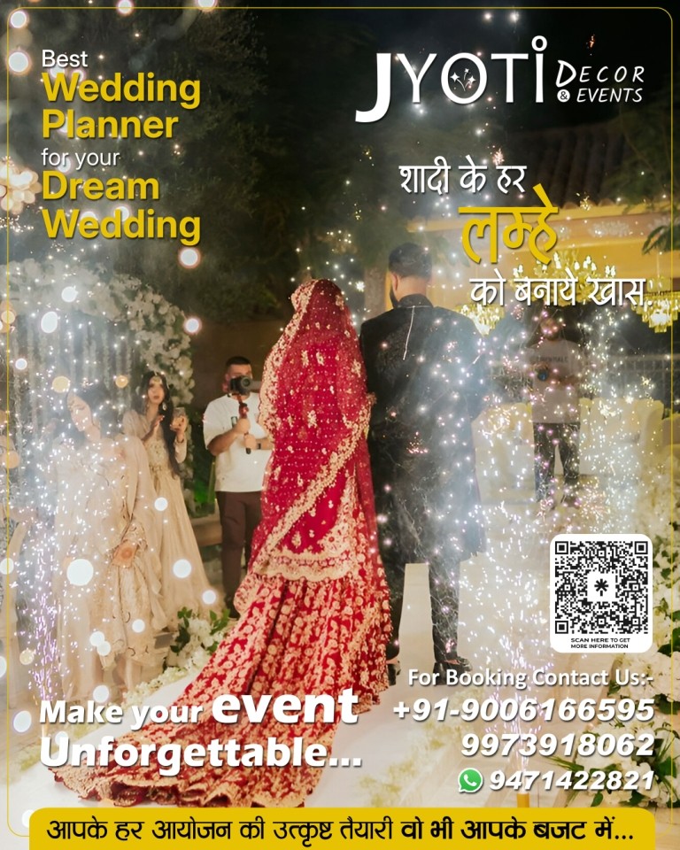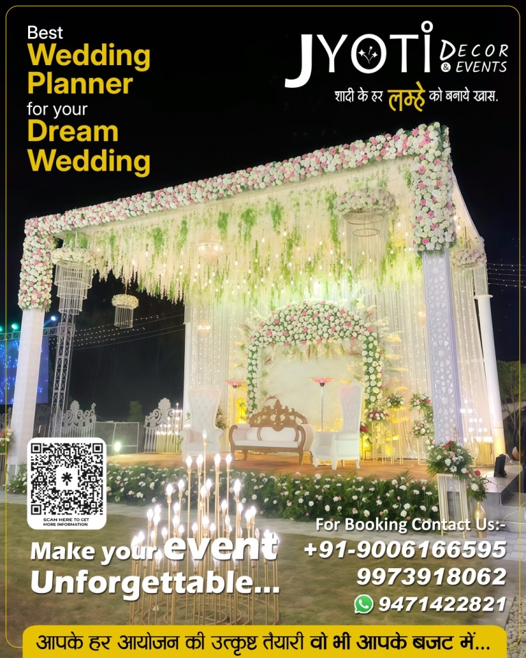 Jyoti Decor & Events is a Gaya (Bihar) based Decor and event management company dedicated to providing customers with a wide assortment of event management services for all sort of corporate and personal events. Be it live shows, celebrity events, entertainment events, star nights, product launches, theme parties, wedding events, birthdays, fashion shows, Tent, Light, Sound & Flower Decor, Catering, Photography and Videography and many more…